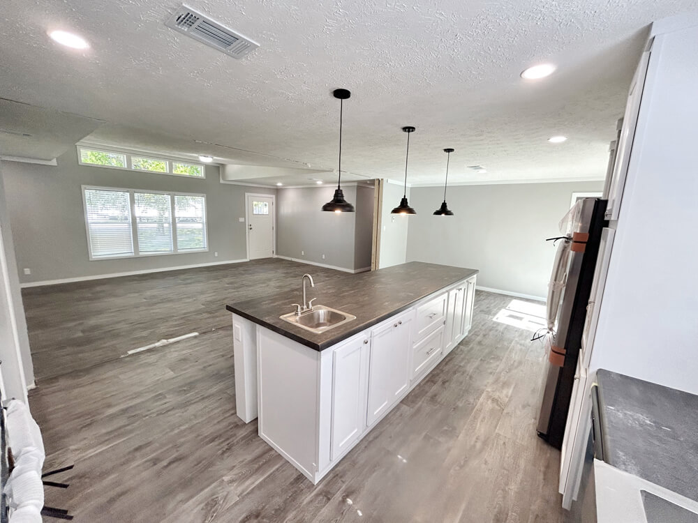 - ✔ Oversized chef’s island with extra prep space and bar seating