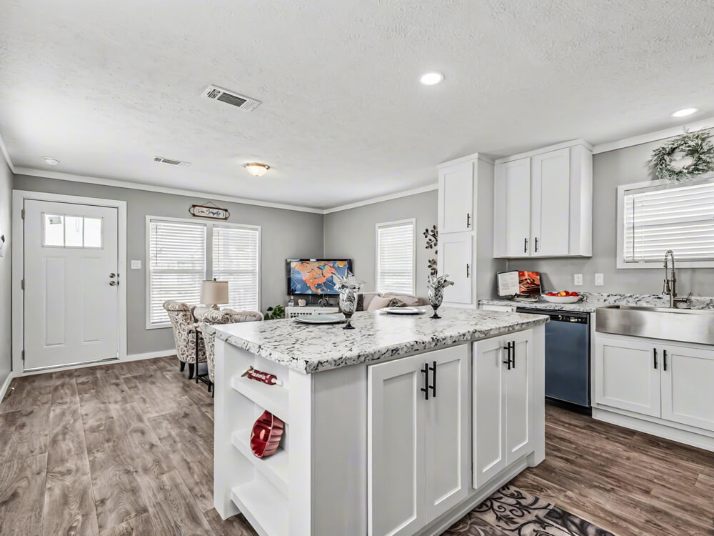 The Bobby Jo offers a perfect blend of comfort and style in a well-crafted 16′ x 60′ layout without porch and 16′ x 66′ with covered porch. This thoughtfully designed two-bedroom, two-bathroom home is ideal for those seeking a functional yet inviting space. Whether you’re relaxing on the porch or enjoying the open living area, The Bobby Jo delivers on every front.